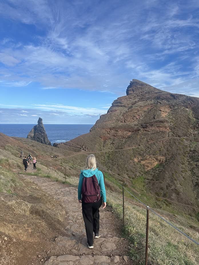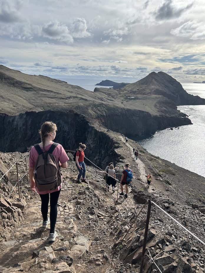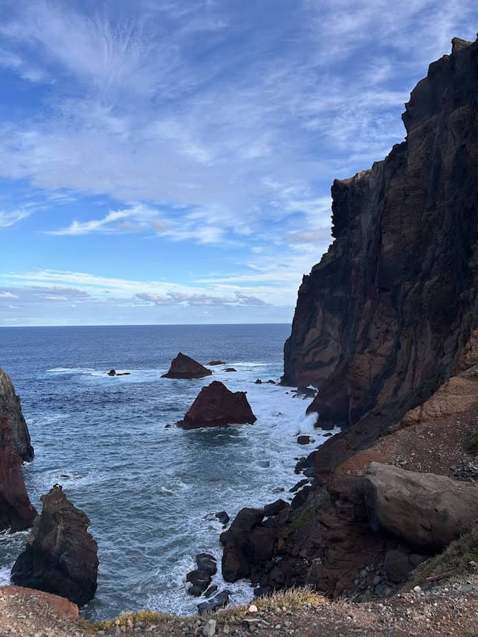 Mijn hoogtevrees daargelaten is de wandelroute zelf echt prachtig. Via houten trappen stap je het bijzondere landschap in. Daarna volgen stenen trappen en puntige rotsen. Langs de route vind je verschillende uitkijkpunten waar je de woeste golven op de kust ziet beuken: een indrukwekkend schouwspel. De mooiste uitkijkpunten op de hike die de moeite waard zijn, zijn Miradouro de São Lourenço en Ponta do Castelo.