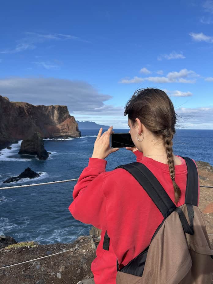 Bovenaan bij uitkijkpunt Miradouro Ponta do Furado kun je kilometers ver kijken. Je ziet het hele schiereiland en bij helder weer zie je zelfs Porto Santo liggen. Foto’s zijn van dochterlief ;)