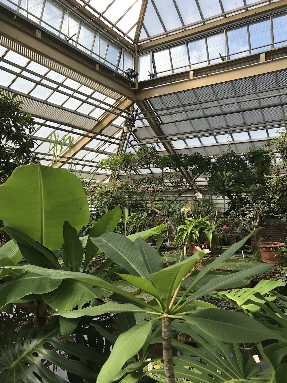 Vanaf het Rijksmuseum van Oudheden wandelen we in nog geen 5 minuten naar de Hortus Botanicus, dat is verbonden aan de Universiteit Leiden. In de tropische kas slaat de warme, vochtige lucht ons tegemoet, wat eigenlijk wel fijn is op deze wat druilerige dag.