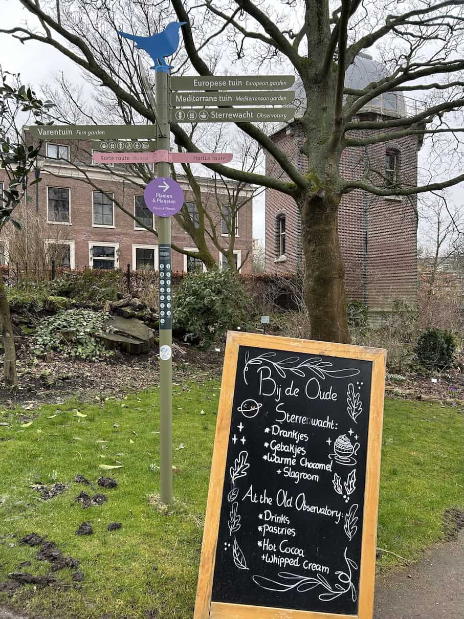 Vanuit de tuinen van Hortus Botanicus wandelen we naar de Oude Sterrewacht. Het gebouw alleen al is prachtig om te zien, met de iconische koepels die boven de bomen uitsteken. Deze sterrewacht is het oudste nog bestaande universitaire observatorium ter wereld. Het bestaat sinds 1633 en wordt nog steeds gebruikt door studenten van de Universiteit Leiden.