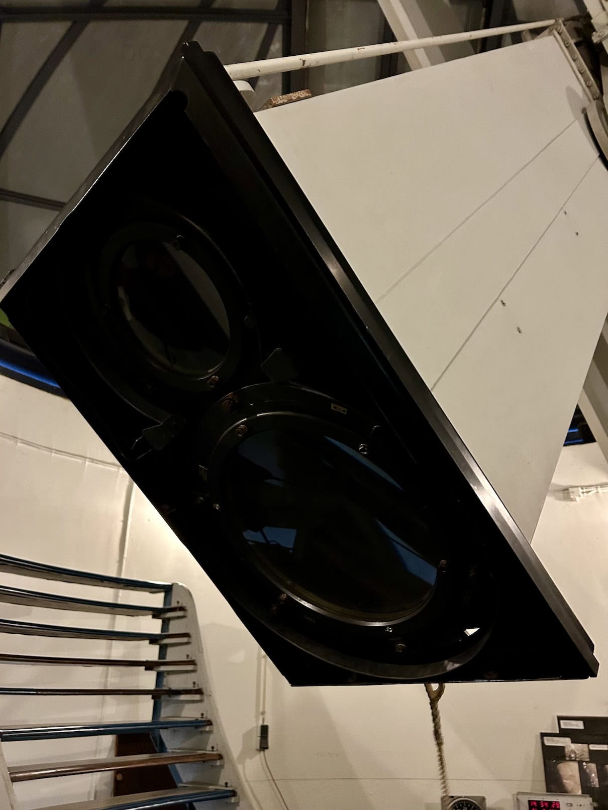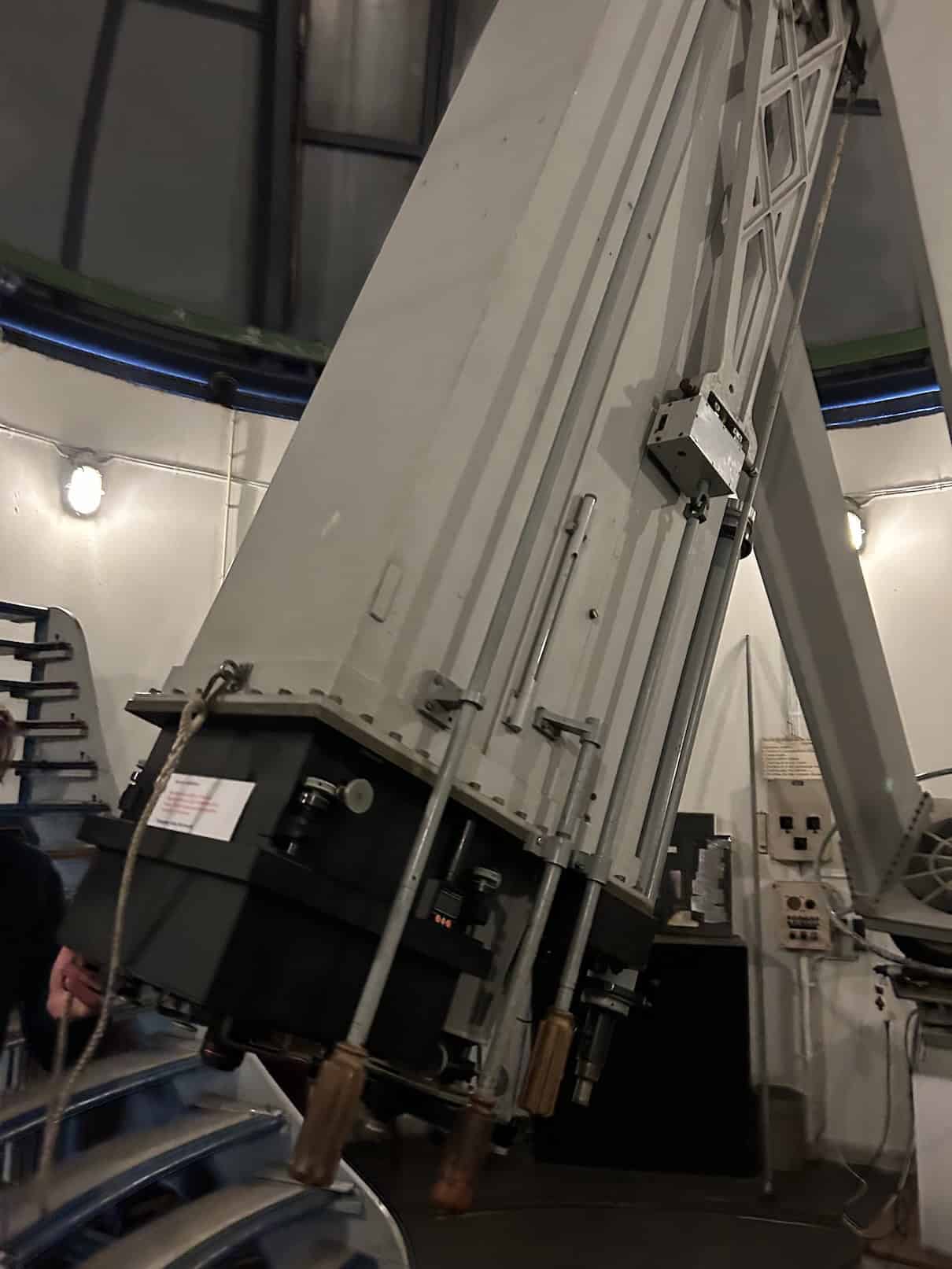 Wij plannen ons bezoek bewust later in de middag en sluiten aan bij de Engelstalige rondleiding. Dat blijkt een absolute aanrader! Wij nemen een kijkje in een van de koepels waar we van alles horen over de telescoop en een kleine demonstratie krijgen hoe de koepel werkt. Wij betalen slechts € 5 per persoon voor de rondleiding en dat is het absoluut waard.